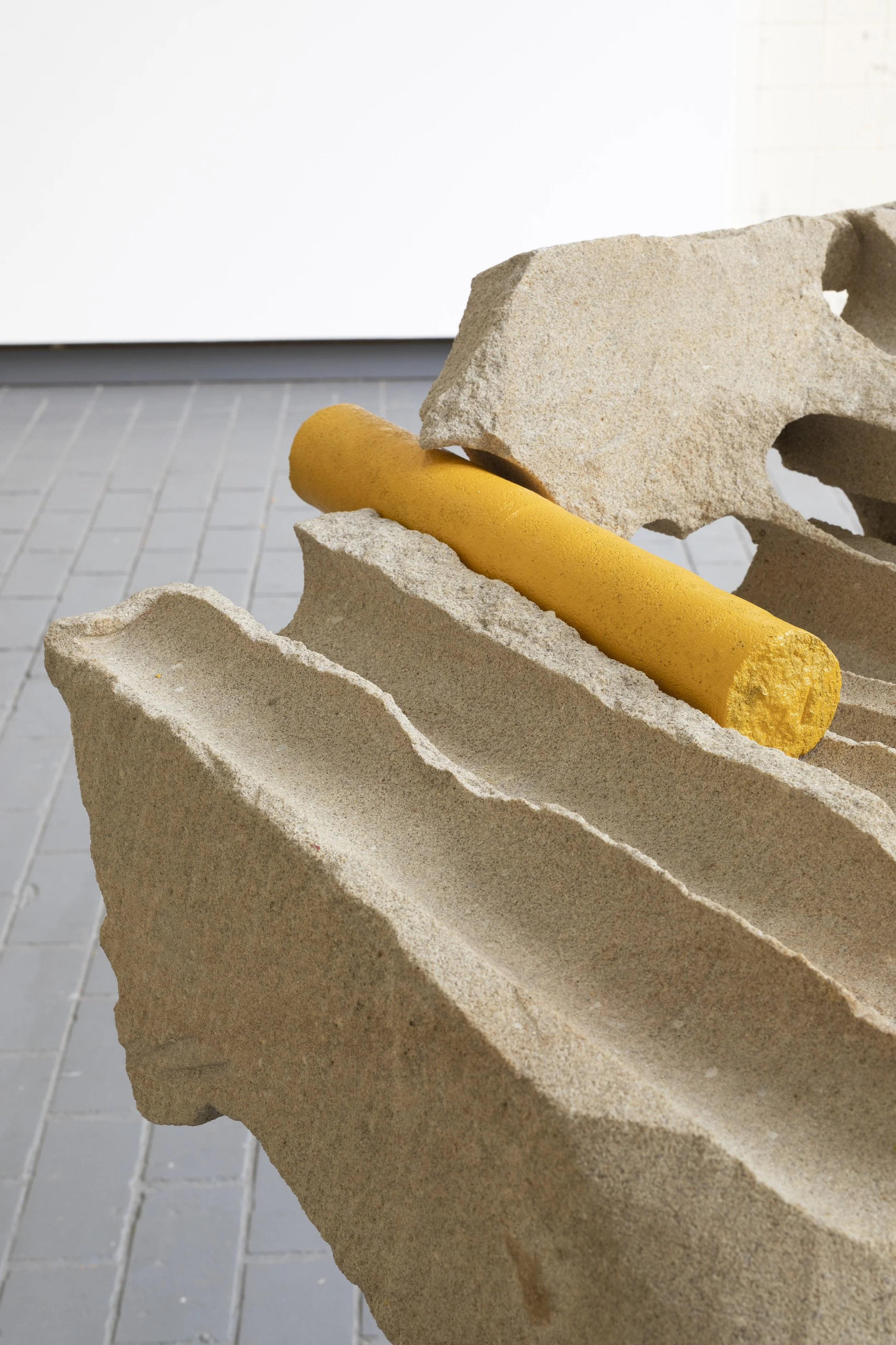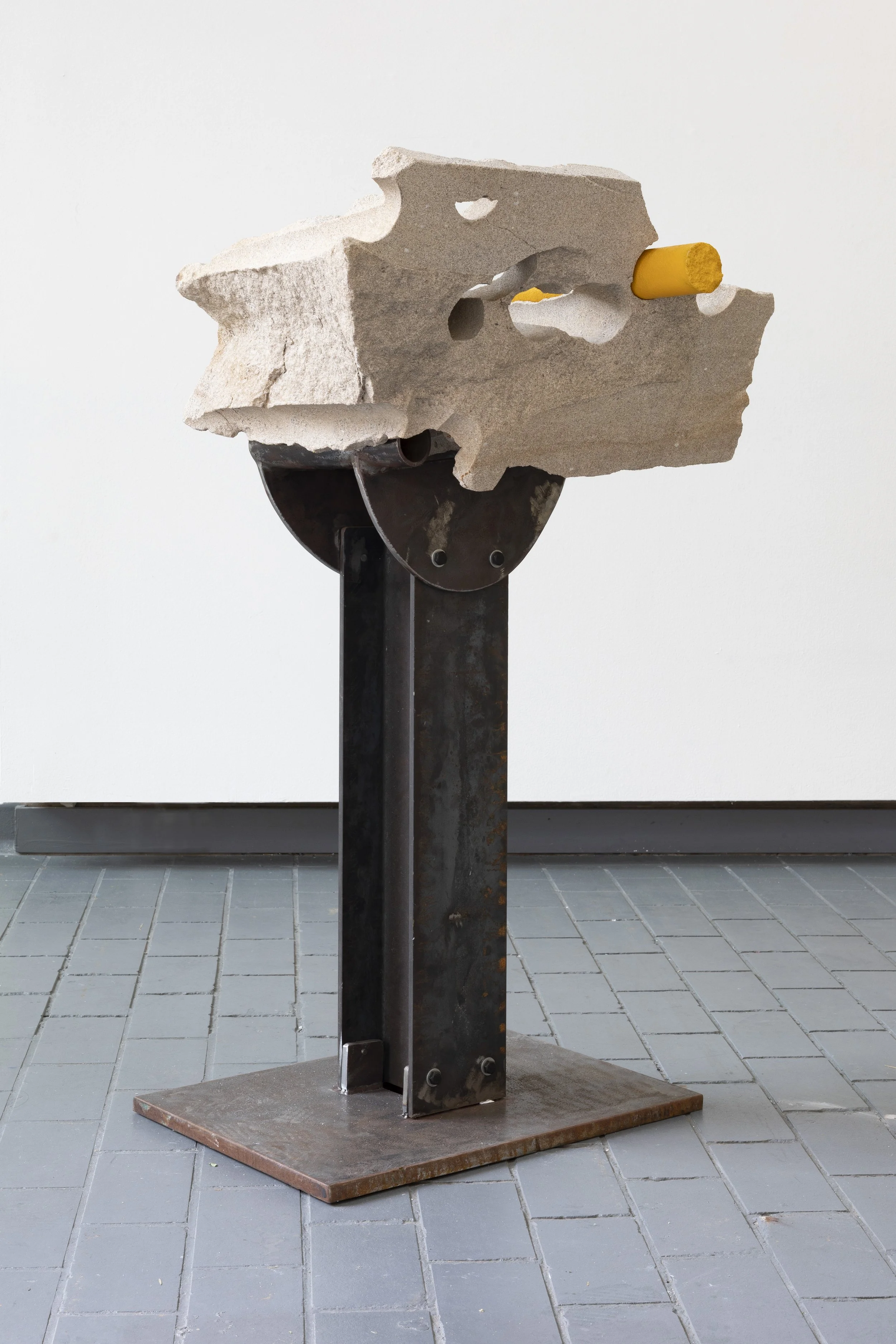 Rock, Plate and Tube, 2024. Rock and steel. 80 x 42 x 38 cm. P.O.R.