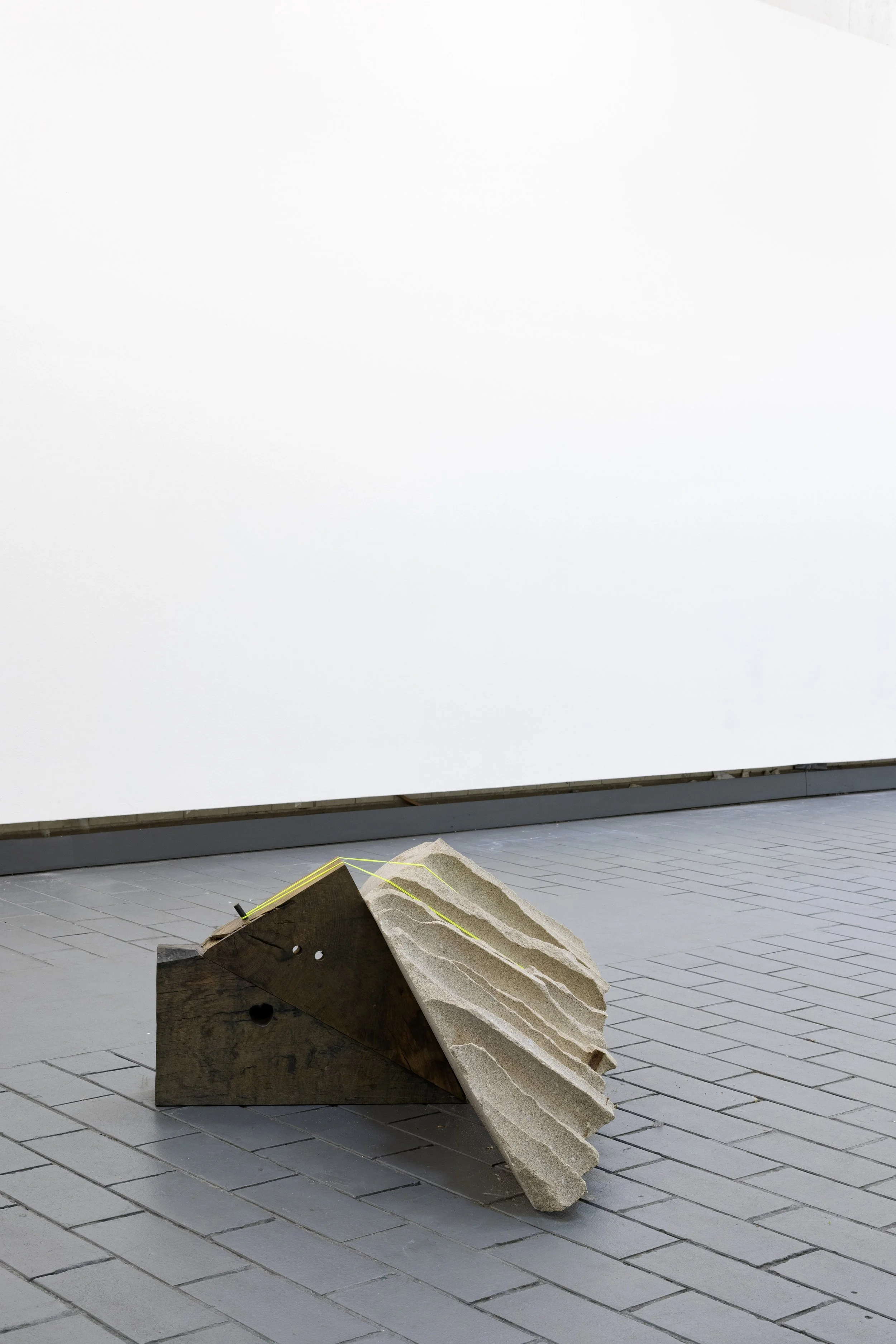 Monolith Wedge #1, 2024. Sandstone, timber, builders string and steel rod, 135 x 145 x 65 cm. P.O.R.